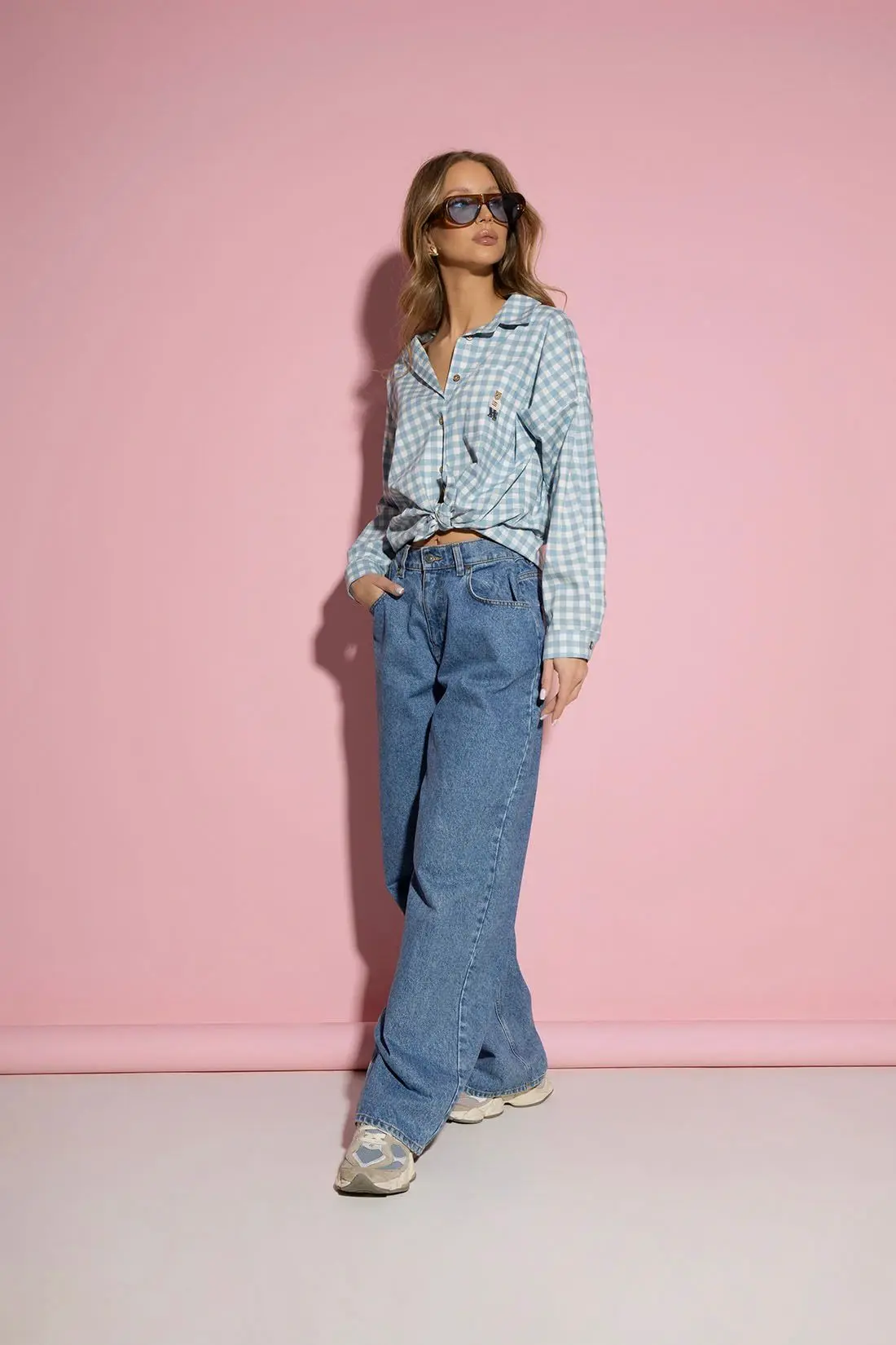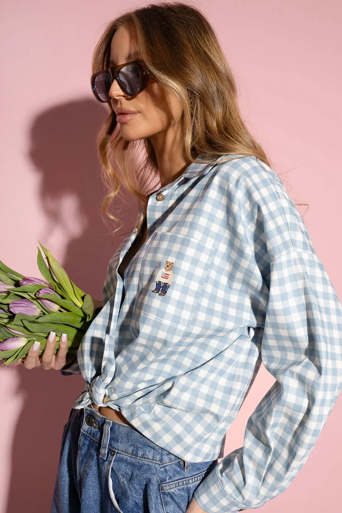 Koszula błękitna w kratę z misiem NOA to stylowa propozycja dla kobiet, które cenią modny luz w połączeniu z dziewczęcym akcentem. Klasyczna krata vichy w odcieniu jasnego błękitu nadaje całości świeżości i lekkości, idealnie wpisując się w wiosenno-letnie trendy.